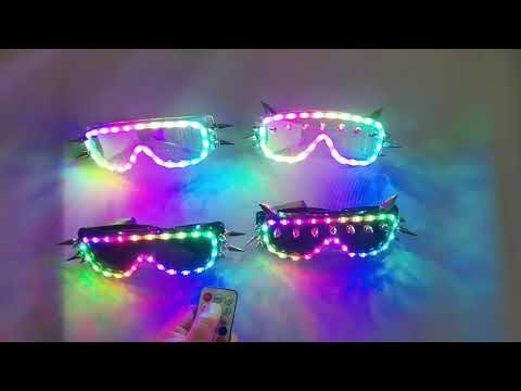 - Dynamic Visual Experience :nnLight up the night with our Colorful LED Glasses, the ultimate accessory for any luminous celebration. Designed to captivate and engage, these glasses feature a full-color light display that is sure to turn heads and create a vibrant atmosphere. The glasses' remote control allows for seamless operation, enabling you to switch through more than 100 different modes to match the mood or theme of your event. Whether you're looking to add a pop of color to a wedding reception or create an immersive experience at a rave, these LED glasses are your go-to party accessory.