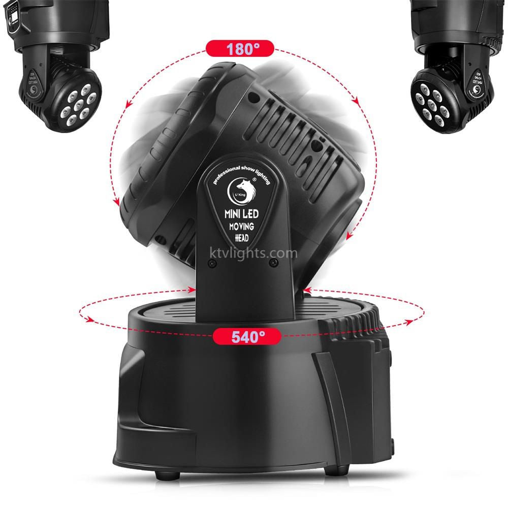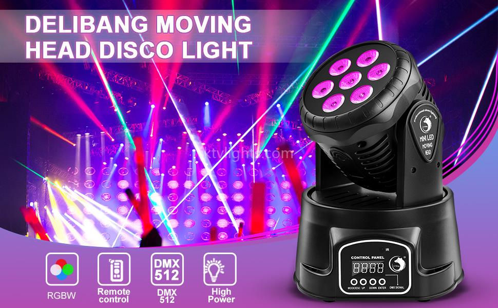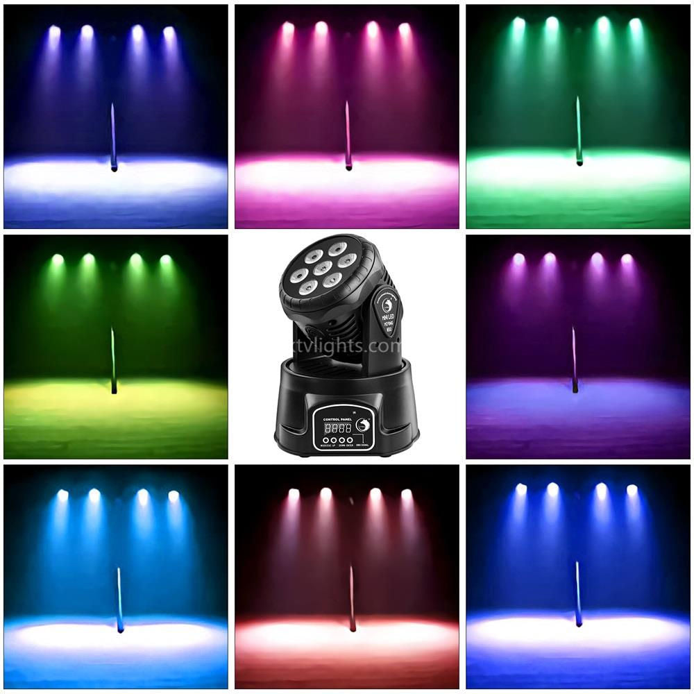 - Moving head function stage light with 7 pcs 4-color RGBW LEDs
